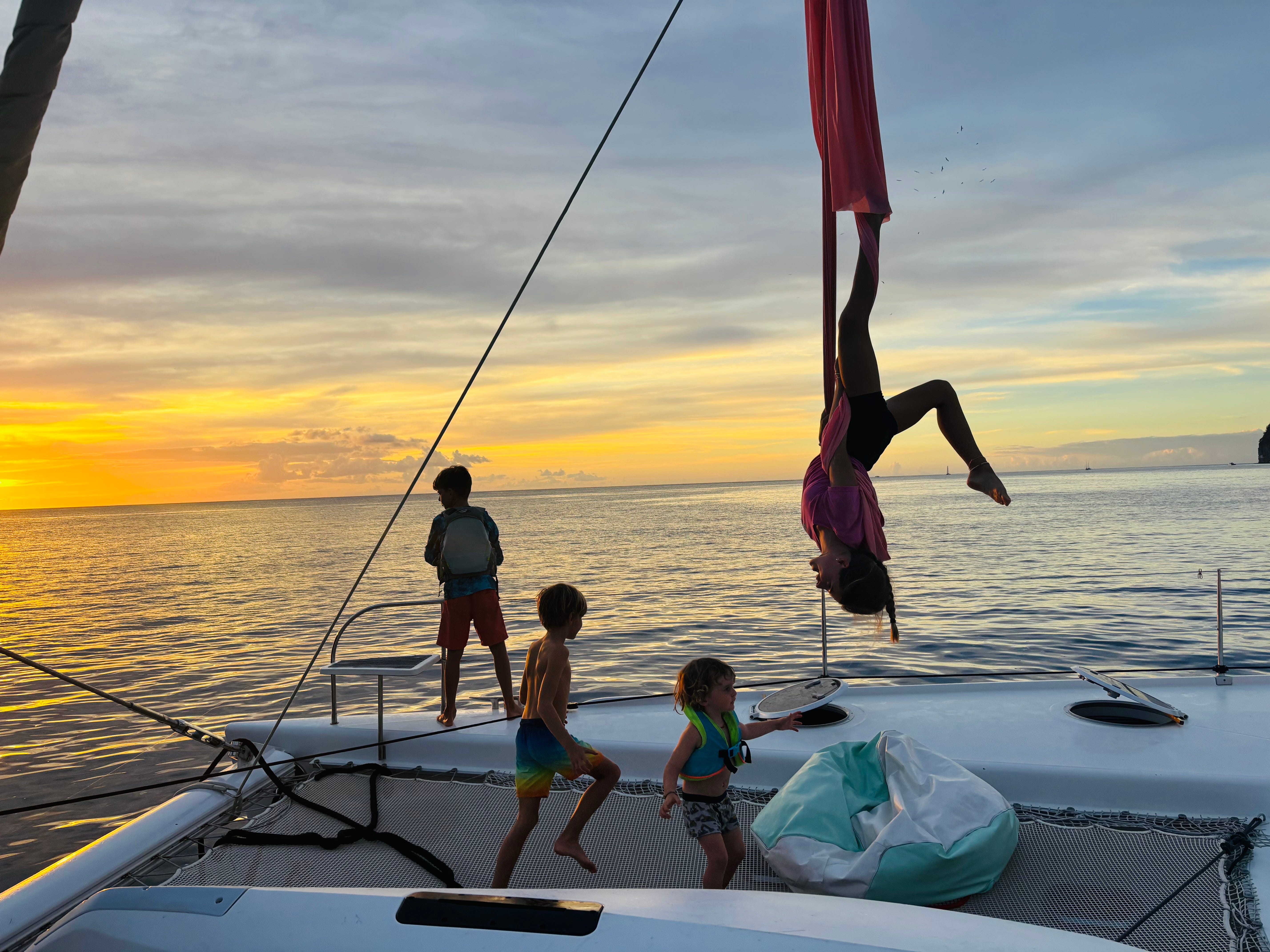 I believe we have another few days here and then maybe we’ll sail around the corner up to Fort de France. There is a big sports store in town there that the kids are dying to get to for new swimsuits, a wakeboard, and maybe a small wing for Charlie to begin learning how to wing board.