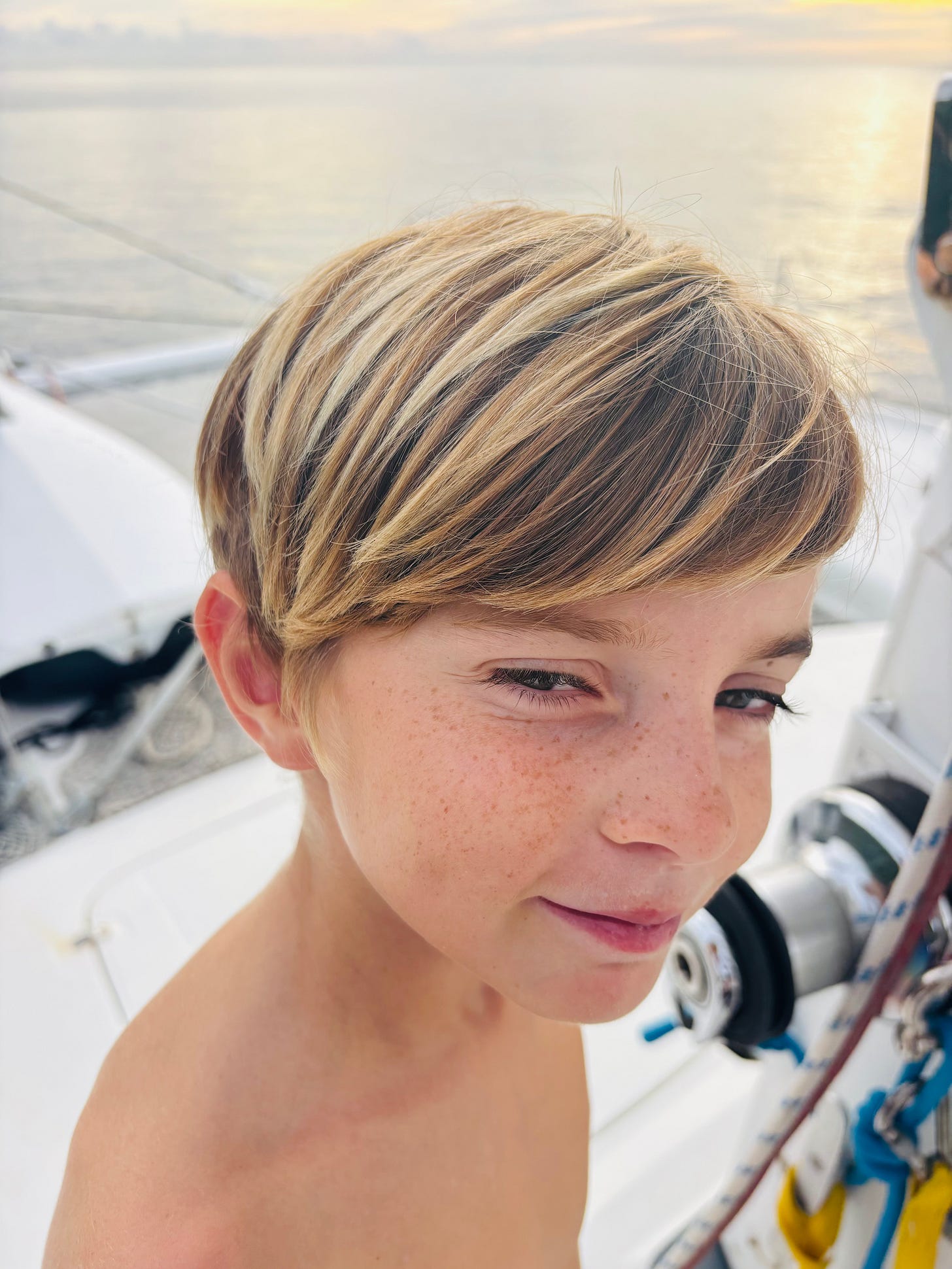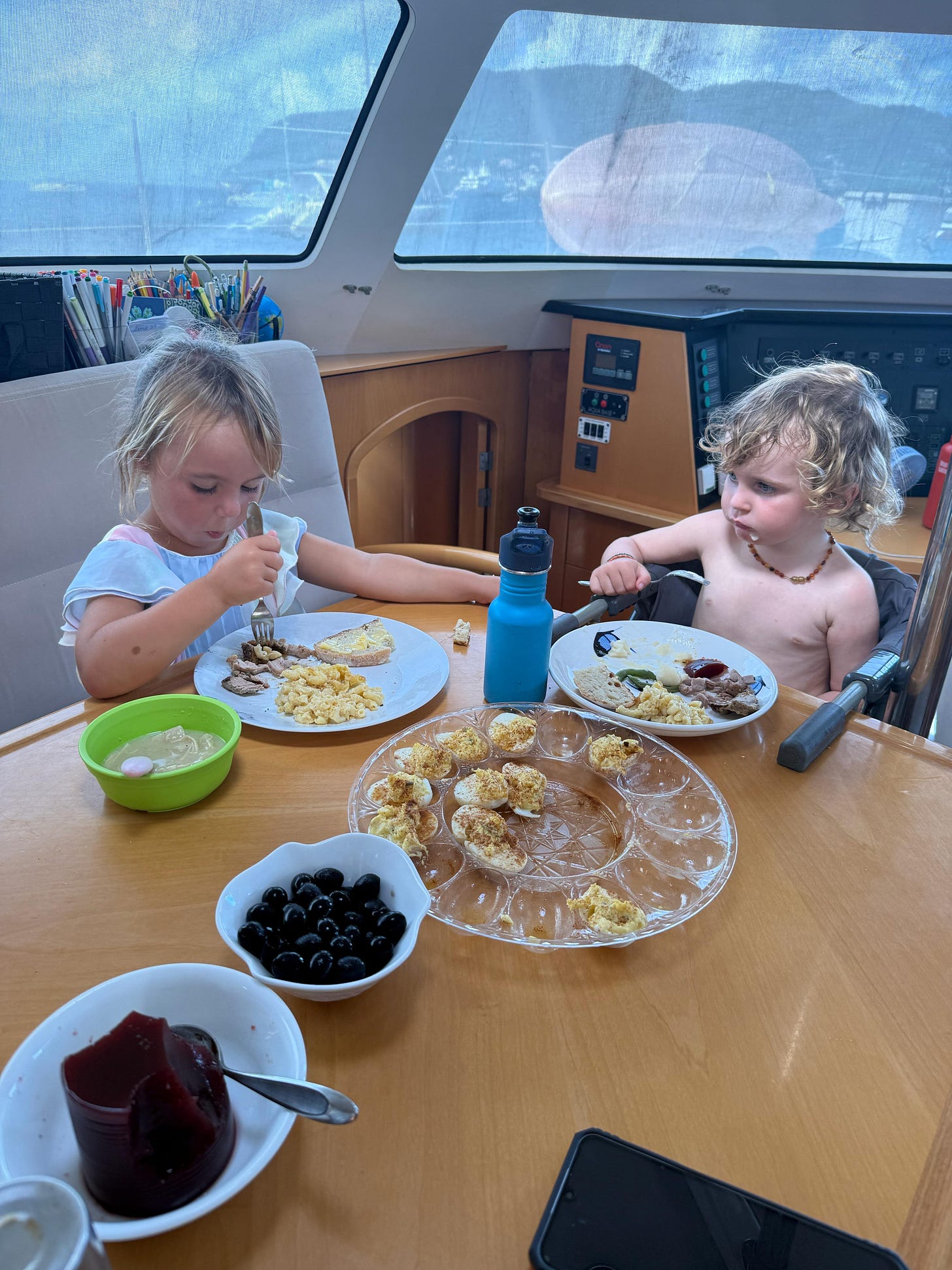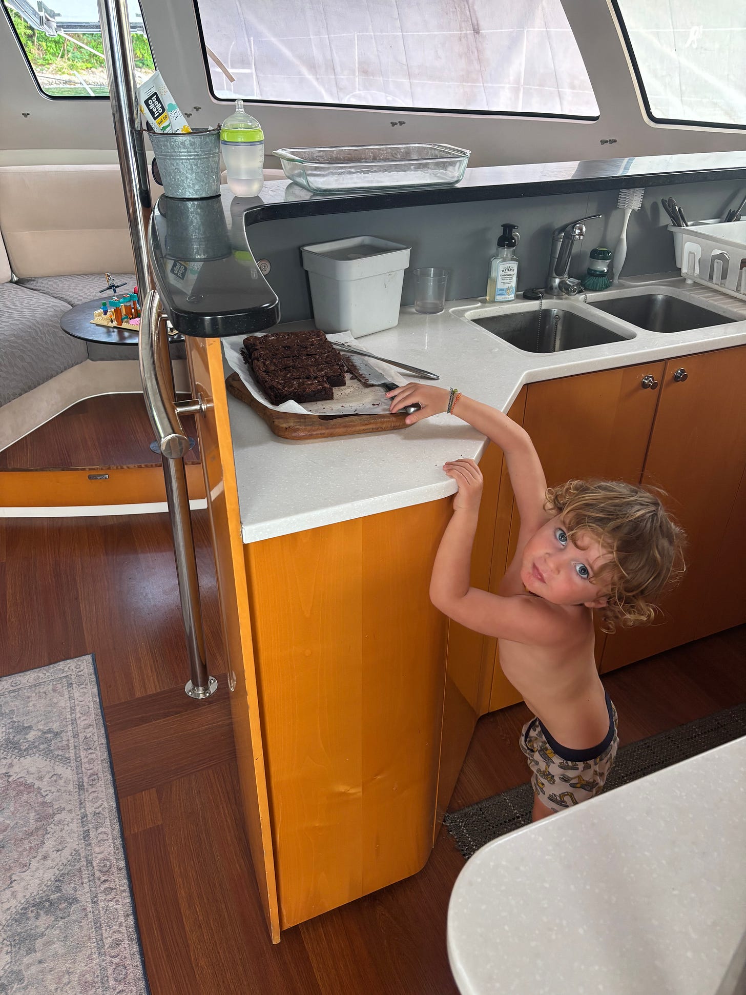 On Dec 1st, we sailed from Bequia to St Lucia and grabbed “the last” mooring ball in the anchorage just north of the magnificent Pitons. It was very tight next to the other boats and we could’ve nearly stepped right onto the boats if we’d swung around just right. The view was beautiful, but then we were ambushed by gnats as soon as the sun set and we had to turn off all lights just as soon as possible since they were attracted to any light source. In the morning, we had thousands of them stuck to the boat, but I was able to sweep them off during our sail up to Martinique. The boys woke up in St Lucia and proclaimed that they’d been “freezing” during the night. I checked the temp and it had dropped to 74… we’ve been used to a low of 82, so yeah I suppose it’s been much nicer sleeping lately. I did pull out some covers for the first time since the spring. That’s a much welcomed milestone! And also, Joshie has largely been staying the night with Raleigh in her cabin, so our sleep on the port side had dramatically improved. I asked her how she gets him to sleep so well and she admitted to feeding him butter before bed. Level: Expert.